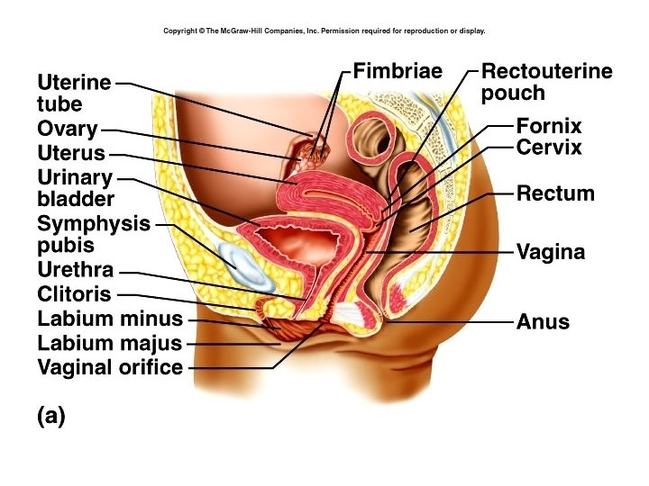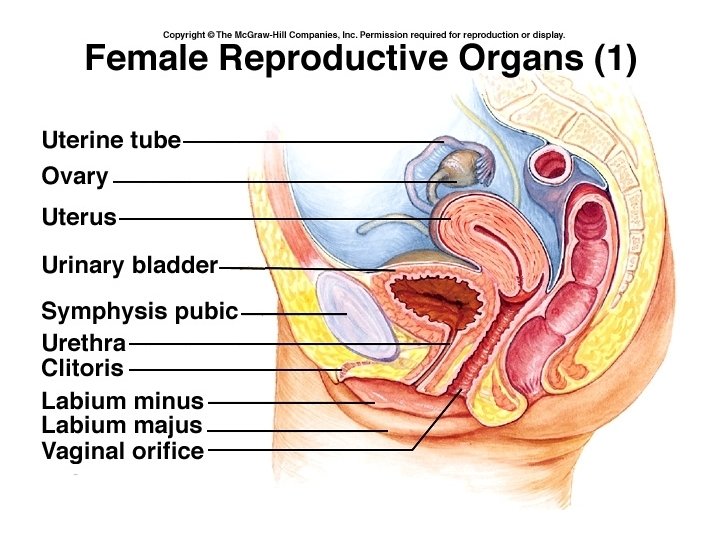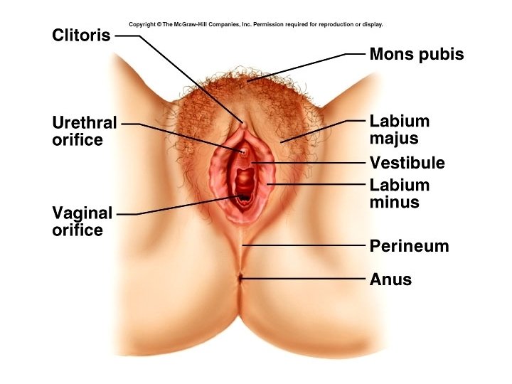 The Vulva • External genitals of female • Mons pubis – pad of adipose tissue which cushions pubic symphysis • Labia majora (labium majus) – folds of skin analogous to the scrotum – Adipose tissue, sebaceous glands, sweat glands • Labia minora (labium minus) – folds of skin with many blood vessels and sebaceous (oil) glands