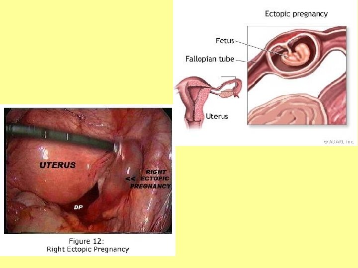 Ectopic Pregnancy • While ova get fertilized in the uterine tubes, the egg should not implant here! • If the egg is implanted anywhere other than the uterus, this is called an ectopic pregnancy • 98% of ectopic pregnancies occur in the uterine tubes • Most will resolve themselves naturally through a miscarriage, but sometimes surgery is required to remove the fetus or internal bleeding can occur