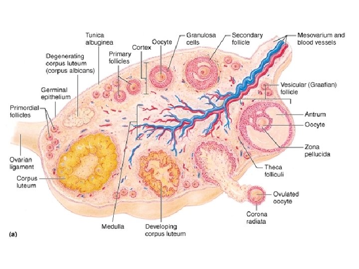 • Oocytes at birth – Suspended meiosis (birth to maturity) • Recruitment at maturity • Meiosis • Release at ovulation