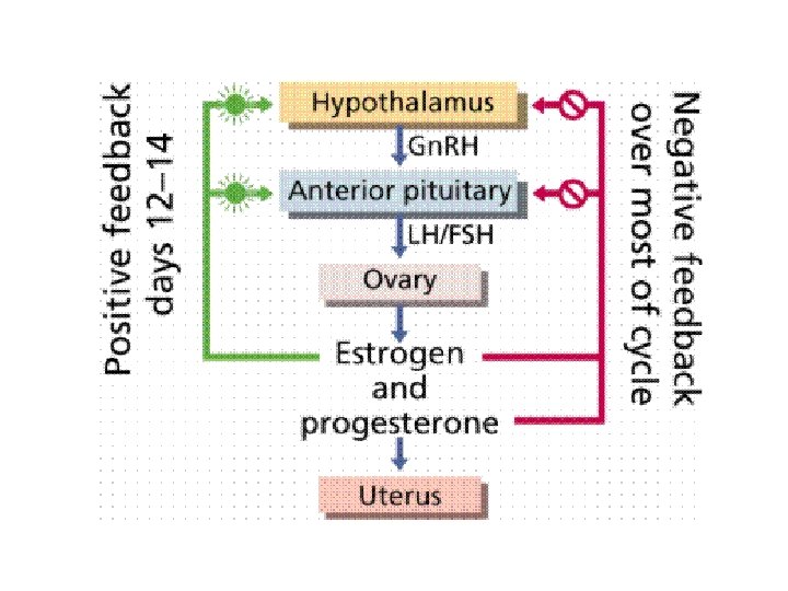• Cyclic production of gonadotropins – Urgent for reproduction – FSH, LH, prolactin produced, released • Feedback loops controlled by endogenous hormones • BUT environmental chemicals can influence feedback loops • Neuronal influences – Affected by anesthetics, cannabinols, sedatives