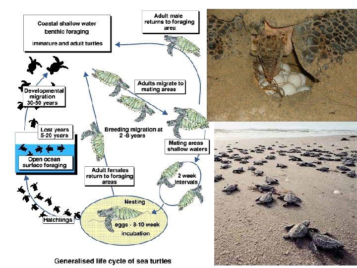 Turtle Life History Carnivorous, Omnivorous, or Herbivorous Generally long-lived Internal fertilization All species oviparous – Nest in soil or sand • Temperature dependent sex determination • No parental care • •