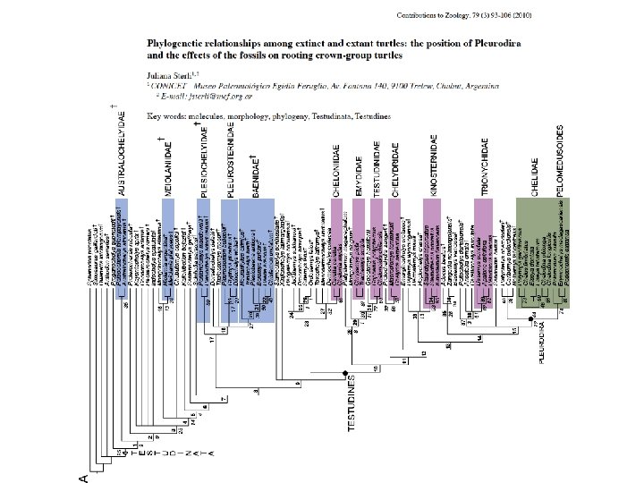 Turtles: Testudines Joyce et al. 2004 Pleurodira Testudines Cryptodira