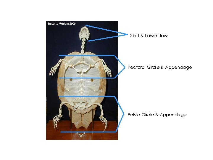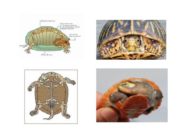 Turtle shell • Carapace (dorsal shell) – Composed of 55 -60 bones • Fused to ribs • Fused to vertebrae • Plastron (ventral shell) – Composed of 9 bones • Bones covered by epidermal "scales"