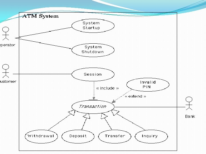 Use-Cases �As requirements are gathered as part of informal meetings, FAST, or QFD, the software engineer (analyst) can create a set of scenarios. �To create a use-case, the analyst must first identify the different types of people (or devices) that use the system or product. �A typical user may play a number of different roles when using a system, whereas an actor represents a class of external entities (often, but not always, people) that play just one role. �Because requirements elicitation is an evolutionary activity, not all actors are identified during the first iteration. �It is possible to identify primary actors during the first iteration and secondary actors as more is learned about the system.