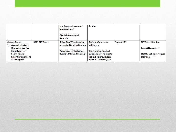 • PLCs and SIP Team will continue to analyze and incoming benchmark data during the month of May to see if PLCs met their SMART goals and to see if we met our building SMART goal • Celebrate success with students, staff, parents and community…we will include celebrations in our May/June newsletter. • Continue to make revisions and additions to SIP plan for the Fall. • Begin putting together the RESA PD plan for 2015 -2016 school year. So…what next?