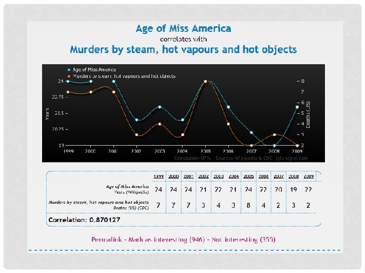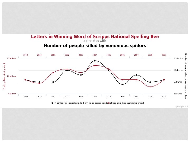 CORRELATIONS • A correlation expresses a relationship between two variables without ascribing cause • Variable = anything that can change or vary • COREELATION DOES NOT = CAUSATION!!!!!! spurious correlations ….