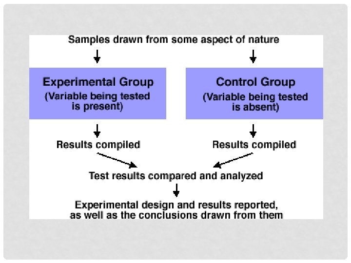 TERMS - CONTINUED • Experimental group • Group exposed to the independent variable that is manipulated…. exposed to the “treatment” • Control group • Group NOT exposed to treatment. Serves as a comparison to the experimental group • Valid • Does the study measure what you aim to measure? • Like…. Hand length a measure of intelligence • Reliable • If the study was done again, would you get the same results?