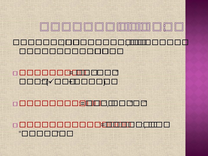 � The object to be proved is prameya…the research topic. � The facts which get established during study are prama. � The reseacher is pramata. � The measures, evidences all come under pramana. � Aprama is false knowledge…. viparyaya, sanshaya and tarka.