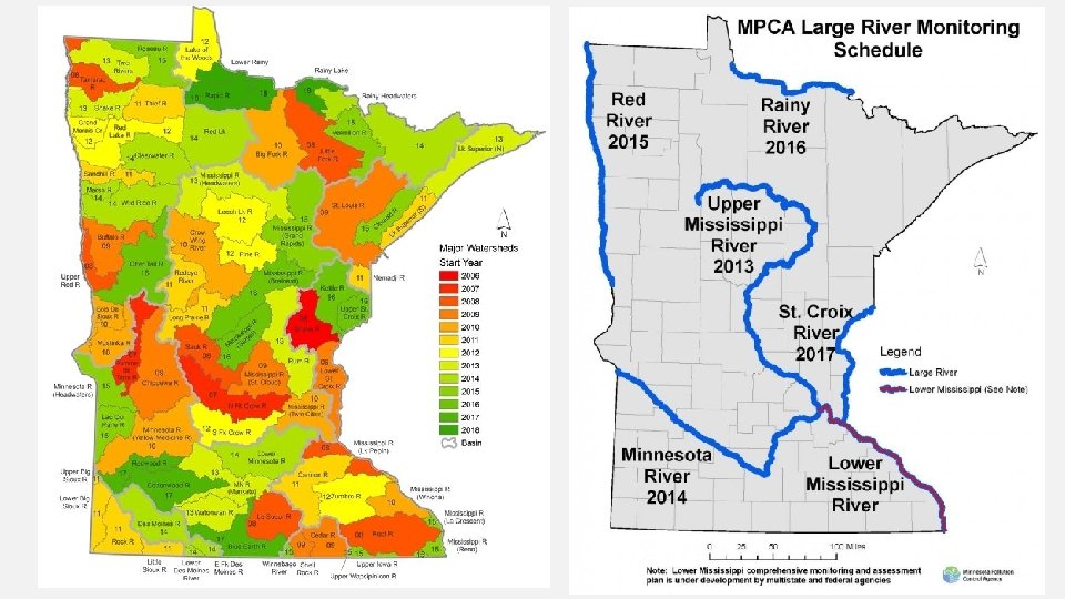 FISH COLLECTED FOR MERCURY AND PCBS AS PART OF MPCA’S INTENSIVE WATERSHED MONITORING PROGRAM • FISH COLLECTED AT “POUR POINT” OF MAJOR WATERSHEDS • GOAL: 5 GAME (PREDATOR) FISH AND 5 ROUGH (BOTTOMFEEDER) FISH • MERCURY ANALYSIS IN ALL INDIVIDUAL FISH • PCBS IN TWO LARGEST INDIVIDUALS OF EACH SPECIES • 10 YEAR CYCLE FOR WATERSHEDS; 5 YEAR CYCLE FOR MAJOR RIVERS