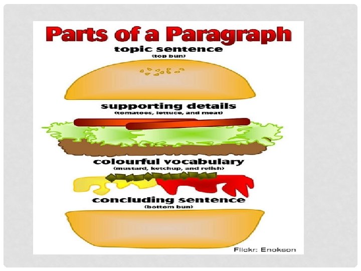 PARAGRAPH STRUCTURE • Topic Sentence • Detail 1 – Should refer to topic sentence. • Detail 2 – Should link #1 to new information. • Detail 3 – Should link #2 to new information. • Conclusion – Summarize and restate And/or make reference to the next paragraph’s topic (transition).