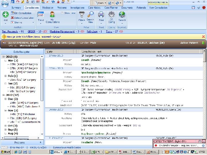 patient records: cancer • date of referral, an agreed diagnosis, pathology and imaging data, chemotherapy prescriptions, and notes of consultations • but not (consistently): risk factors, comorbidities, adverse reactions, disease progression, recurrence, response, and quality of life