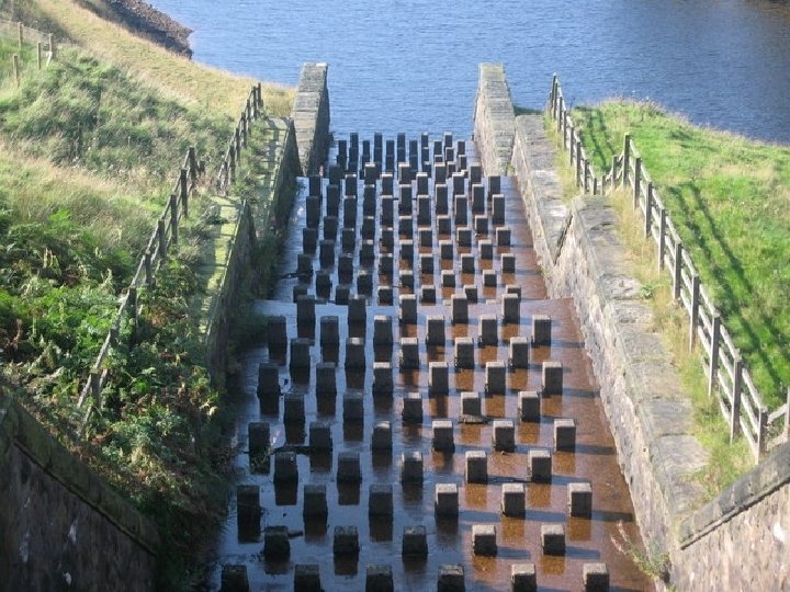 Stepped spillways l These have been used for over 3, 000 years. Recently, new construction materials (e. g. RCC, gabions) and design techniques (e. g. embankment overtopping protection) have increased the interest in stepped spillways. l The steps produce considerable energy dissipation along the chute and reduce the size of the required downstream energy dissipation basin. l Research is still active on the topic, with newer developments on embankment dam overflow protection systems , converging spillways and small weir design.