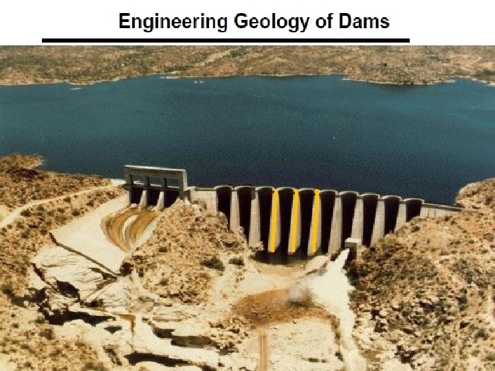 Buttress Dam: TYPES OF DAMS • Buttress Dam – Is a gravity dam reinforced by structural supports • Buttress - a support that transmits a force from a roof or wall to another supporting structure This type of structure can be considered even if the foundation rocks are little weaker • Advantages: – Less material required – Strong rock foundation not required (as for arch dams) • Disadvantage– Height limitations – Construction difficulty