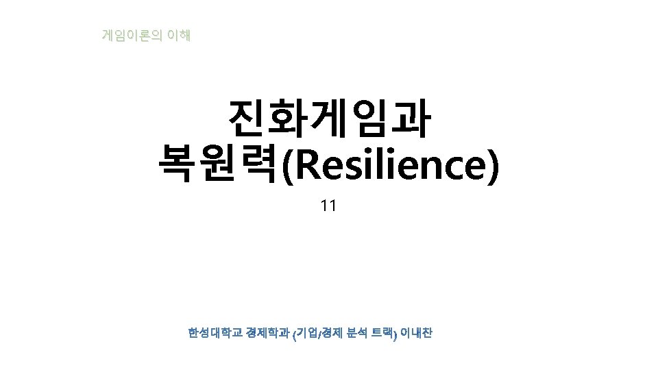 목차 Resilience 복원력 ball-and-cup 균형 이전 이론 Shifting Balance Theory A Beautiful Mind 파국 이론CATASTROPHE THEORY 상미분 방정식(ODE) 분기(Bifurcation) 진화게임과 반복자(replicator)