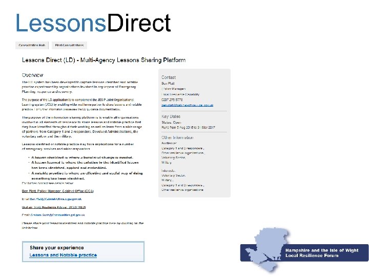 Benefits • Secure and easy to access platform for the resilience community • Accredited by the National Cyber Security Centre (part of GCHQ) • Provides real time data and intelligence from a variety of sources • Promote best practice • Enables shared situational awareness