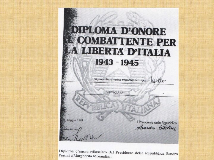 P protegge la patria A aiuta gli indifesi R rimase per molto lontano dai suoi cari T tra freddo e fatiche I intraprese molteplici combattimenti dopo aver G giurato fedeltà ai compagni I instancabilmente pronto a combattere A anche se ha sofferto tanto N non si è mai scoraggiato nei momenti di bisogno, quando • O ovunque c’erano pericoli, eccidi e rastrellamenti • • • .