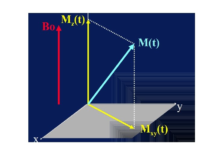 L’aimantation M fait avec: le champ B 0, un angle θ = 90°. M se décompose en : M se décompose en -MT qui est projetée sur l’axe XOY -ML sur l’axe OZ // B 0.