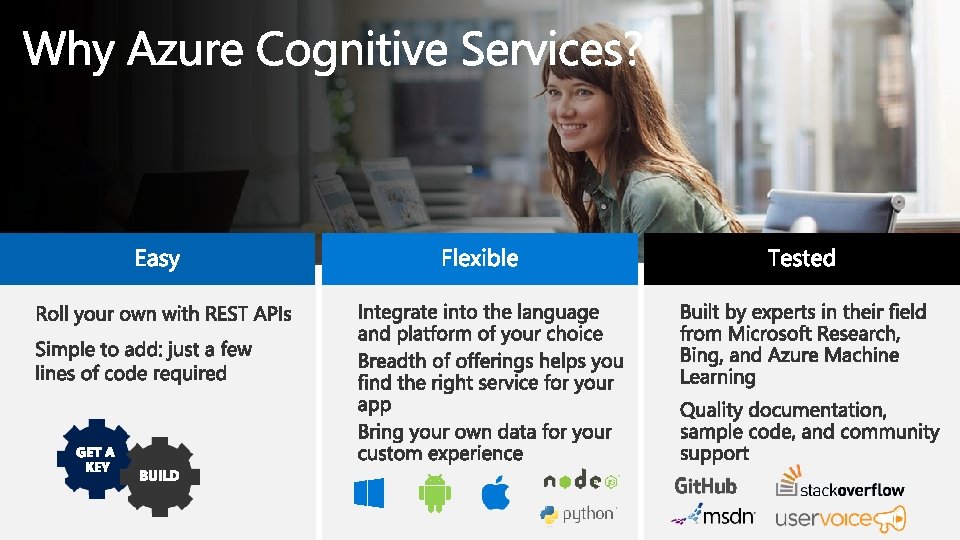 /Docs alert Getting Started Series… https: //aka. ms/Text. Cog. Svc https: //aka. ms/Automated. MLDoc https: //aka. ms/Azure. MLHyper. Drive https: //aka. ms/AA 3 dzht Other Materials Azure ML Best Practices Repos github. com/microsoft/nlp-recipes/ • Computer Vision github. com/microsoft/Computer. Vision • Recommenders github. com/microsoft/Recommenders https: //aka. ms/9 MLTips