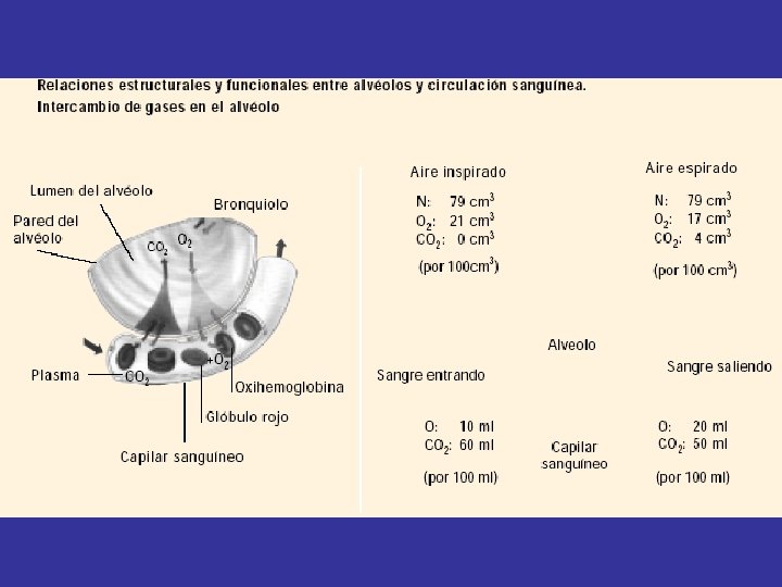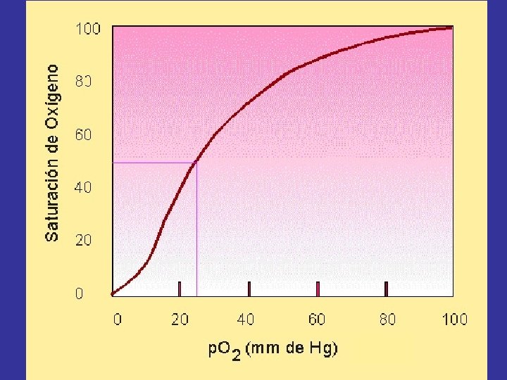 Equilibrio Oxígeno-Hemoglobina • La unión del oxígeno a la hemoglobina depende de la presión parcial de oxígeno existente en ese momento. La relación existente entre unión del O 2 a la hemoglobina y su presión parcial se llama curva de equilibrio hemoglobina-oxígeno y se determina experimentalmente. La unión del oxígeno a la hemoglobina está relacionada con varios factores fisiológicos: • La unión con el oxígeno es reversible: hemoglobina --> oxihemoglobina --> hemoglobina. • La reacción del oxígeno con la hemoglobina es muy rápida (del orden de milisegundos) • La forma S (sigmoide) de la curva es debida al cambio de forma de la molécula de la hemoglobina cuando se han unido oxígeno a 3 de los grupo hemo A. Funcionalmente, esta curva permite que el oxígeno se combine con la hemoglobina en los pulmones incluso con bajas presiones alveolares de oxígeno y sea liberado en los capilares incluso a altas presiones parciales