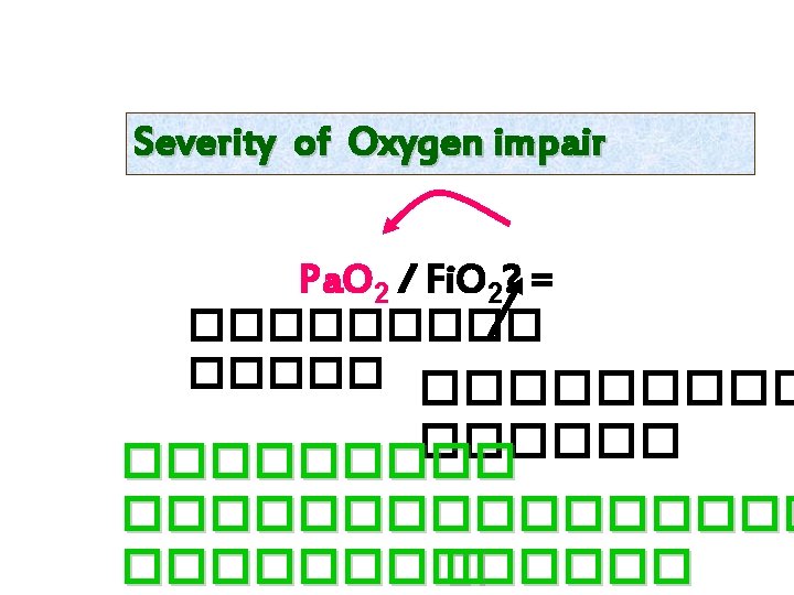 FO 2 Severity of gas exchange defect Pa. O 2/Fi. O 2>200 ~ shunt <20% Spontaneous resp_increase Fi. O 2 Pa. O 2/Fi. O 2 = 150 -200 ~ shunt >20% Need IPPV especially in CVS, CNS patients Pa. O 2/Fi. O 2 <150 ~ shunt >30% IPPV+ SPECIAL CARE