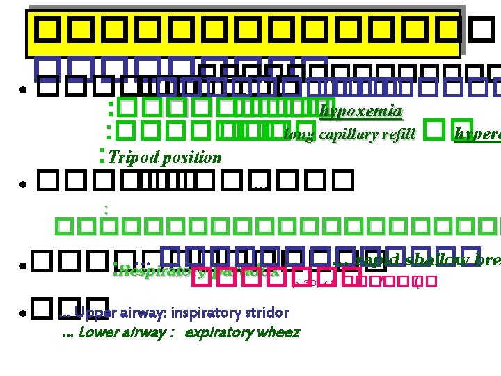 Hypoxemia (A-a)O 2��� PV-O 2 ���� Gas exchange abnormal Not response to increase Fi. O 2 True shunt Response to increase Fi. O 2 • Diffusion defect • V/Q mismatch
