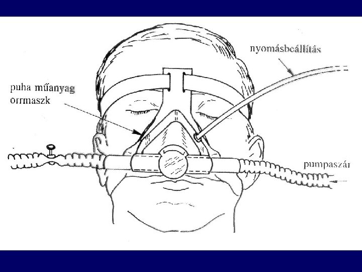 Diagnosis of SAS (poliszomnográfia) • • • EEG EOG EMG EKG ABG, pulzoximetry Detection of airflow Detection of breathing movements, leg movements Voice recording Video