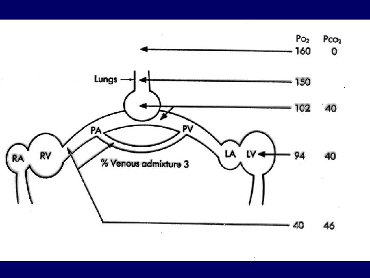 Alveolar gas equation: PA (mm. Hg) = (PB-47) x FIO 2 – 1. 2 x Pa. CO 2 102 = 150 - 48