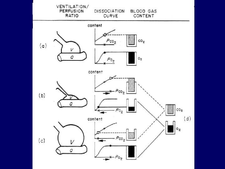 Ventilation-perfusion mismatch • “Functional shunt”, most frequent cause of hypoxemy • COPD, ILD, pulmonary embolism • Regional differences in airway resistance and lung compliance • Hypercapnia: only in severe cases (blue bloater) • Hypoxemia: correctable with small increase in FIO 2
