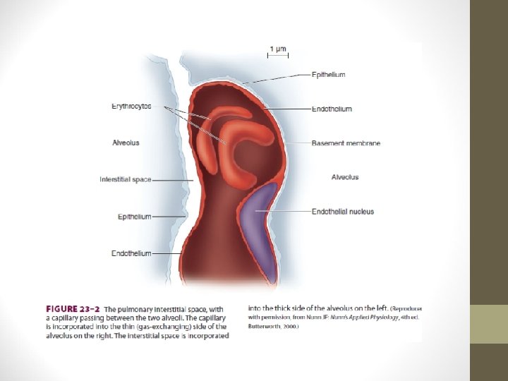 • The trachea bifurcates at the carina into the right and left main stem bronchi • Dichotomous division, starting with the trachea and ending in alveolar sacs, is estimated to involve 23 divisions. • An estimated 300 million alveoli provide an enormous membrane (50– 100 m 2 ) for gas exchange in the average adult • Gas exchange can occur only across the flat epithelium, which begins to appear on respiratory bronchioles