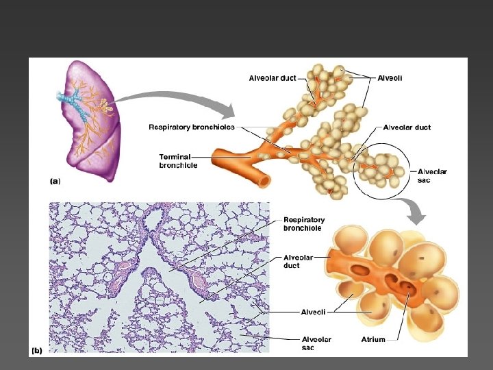 Basics of the Respiratory System Functional Anatomy • What is the function of the lower respiratory tract? – Exchange of gases …. Due to • Huge surface area = 1 x 105 m 2 of type I alveolar cells (simple squamous epithelium) • Associated network of pulmonary capillaries – 80 -90% of the space between alveoli is filled with blood in pulmonary capillary networks • Exchange distance is approx 1 um from alveoli to blood! – Protection • Free alveolar macrophages (dust cells) • Surfactant produced by type II alveolar cells (septal cells)