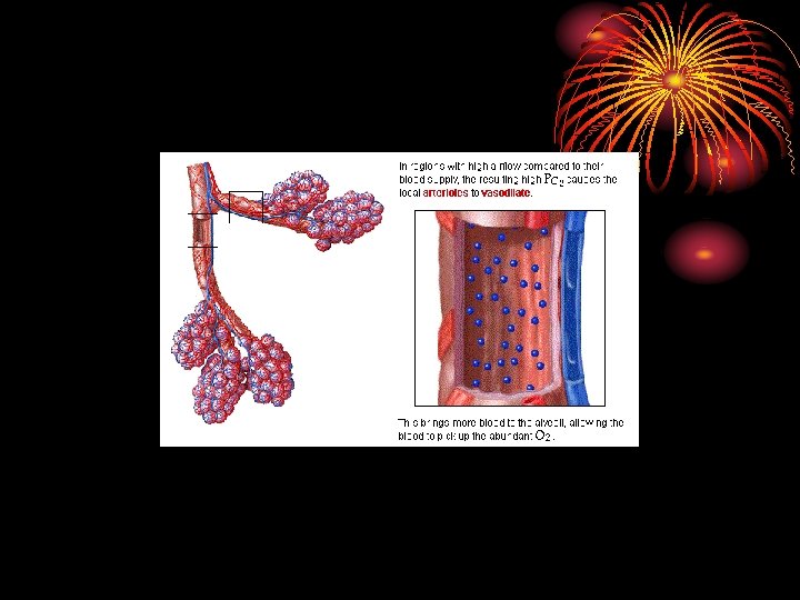 Ventilation-perfusion ratio V/Q • Pulm. alveolar ventilation / perfusion = 4. 2/5. 5 = 0. 8. • Both ventilation and perfusion decreases towards the apex, but the perfusion decreases more, so V/Q increases at the apex (more PO 2 T. B) at apex.