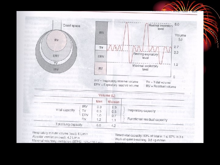 • Dead spaces are anatomical or physiological: no gas exchange. • Work of breathing is either elastic or non-elastic. • Bronchial tone can be affected by many factors which are related to asthma. • Surfactant? def. can cause IRDS.