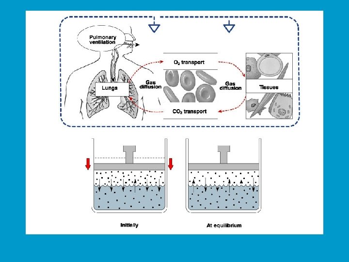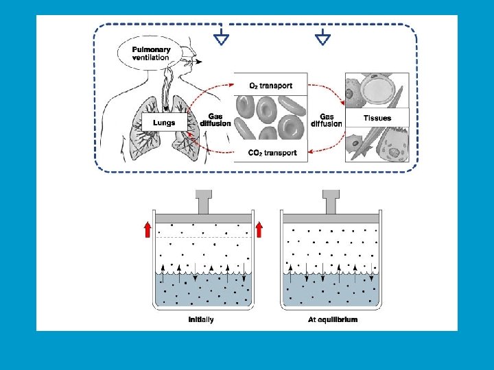 Physical Principles of Gas Exchange n Diffusion of gases through the respiratory membrane n n Depends on membrane’s thickness, the diffusion coefficient of gas, surface areas of membrane, partial pressure of gases in alveoli and blood Relationship between ventilation and pulmonary capillary flow n n Increased ventilation or increased pulmonary capillary blood flow increases gas exchange Physiologic shunt is deoxygenated blood returning from lungs