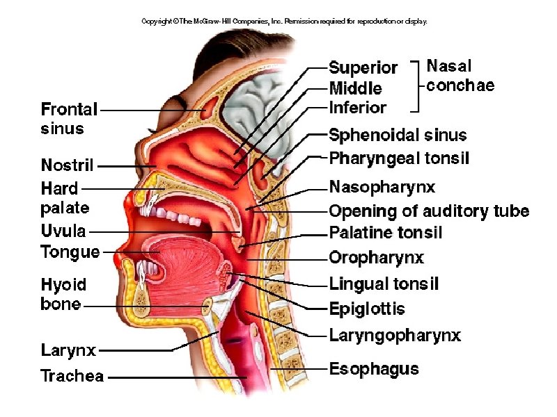 Quick Quiz 1. What do you call the bones found within the nasal cavity? 2. What specific bone divides the nasal cavity into two sides? 3. The space at the back of the mouth is the____. 4. The spaces within the bones of the skull are called the ___________ 5. What structure is known as the windpipe? ______ 6. What is the triangular slit that opens during breathing and talking? 7. In what structures does gas exchange occur? 8. During swallowing, this flap closes to prevent food from entering the airway: ___________