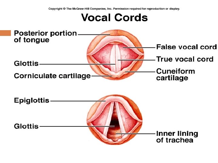6. Larynx Voice production Composed of 9 pieces of cartilage, including: Thyroid cartilage Epiglottis Vocal folds Glottis Cricoid cartilage