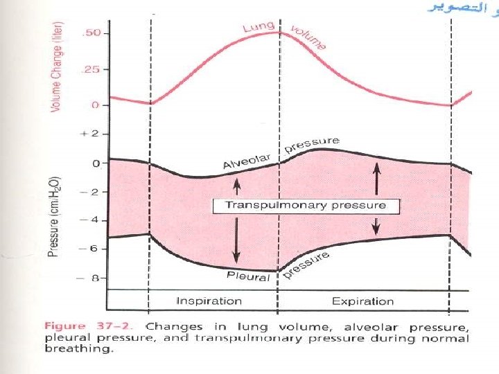 Inspiration Expiration Intra-alveolar pressure Atmospheric pressure Transmural pressure gradient across the lung wall Intraplural pressure Fig. 12 -13, p. 375