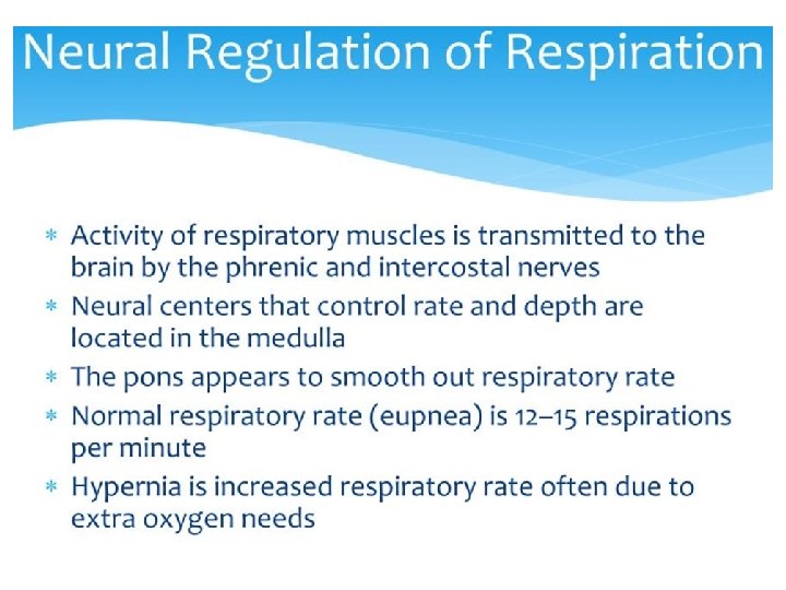 Control inspiration Control force expiration Control rate and pattern of breathing Controls the intensity of inspiration.