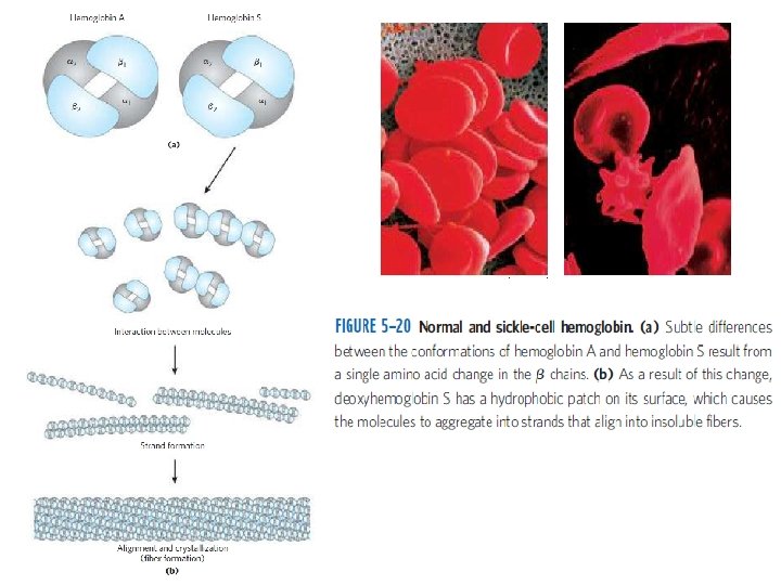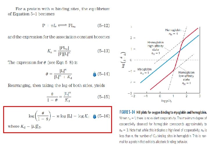 Hb binds Oxygen Cooperatively • Hb must bind oxygen efficiently in the lung, where p. O 2 is about 13. 3 k. Pa, and release O 2 in the tissues, where the p. O 2 is about 4 k. Pa. • Hb undergoes a transition from a low-affinity state (T state) to a high -affinity state (R state as more O 2 are bound. • Hb has a hybrid S-shaped, or sigmoid curve for oxygen. • O 2 binding to individual subunits of Hb can alter the affinity for O 2 in adjacent subunits.