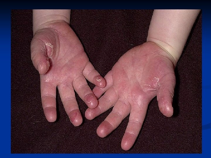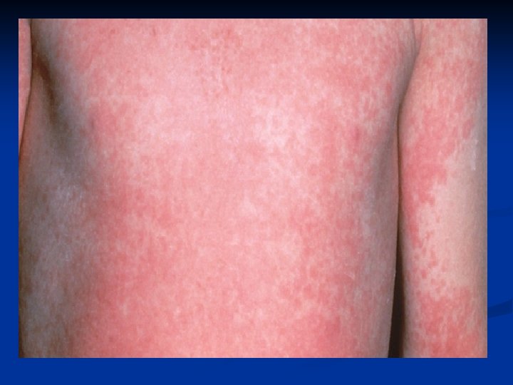 Scarlet fever acute, bacterial, rash disease of childhood n caused by β hemolytic streptoccoccus, group B n incubation period 1 -7 days ( average-3 days) acute onset, fever, vomiting, abdominal pain, n pharyngitis , tonsilitis n rash appears on 1 or 2 day- macular , punctate intensively red n characteristic location on face- paleness n