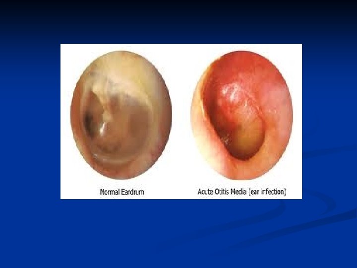 acute infection of the middle ear Complications: n mastoiditis n meningitis Reccurent ear infection may cause chronic secretory otitis media( glue ear), leading to hearing loss