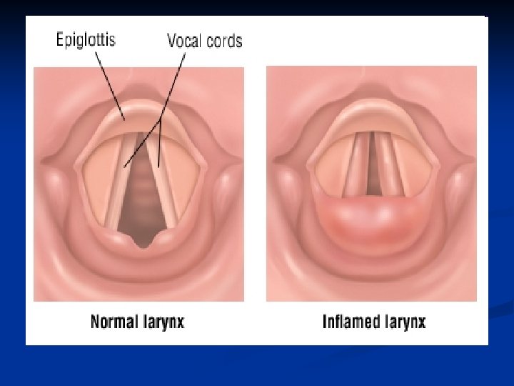 Epiglottic laryngitis Etiology: Haemophilus influenzae HIB, rare after HIB vaccinations Treatment of epiglottitis n In intensive care unit n Intubation n Antibiotic (cephalosporin II, III generation)