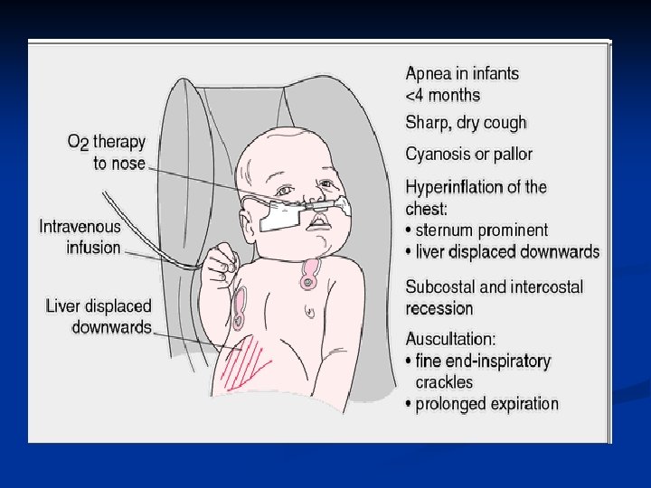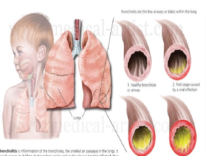 Bronchiolitis Typical childhood infection n Most often in infancy n Cough, expiratory dyspnoe, fever n Involvment of bronchioli n Respiratory insufficinecy n Wheezing , crackles n