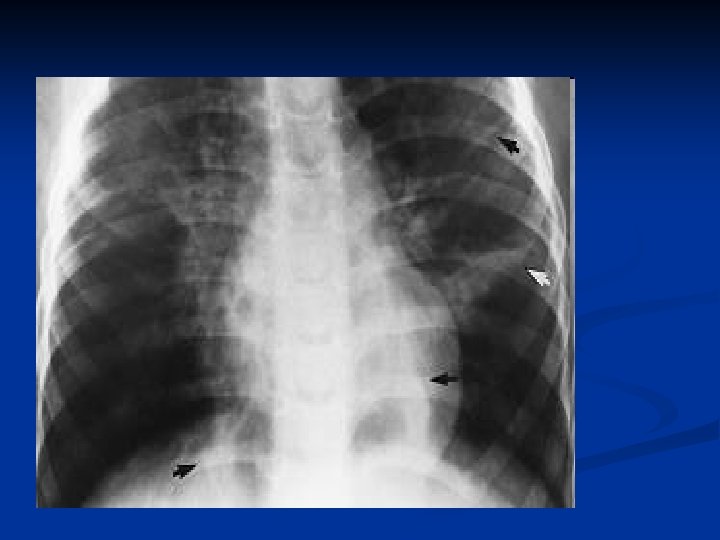 Pneumonia-diagnosis chest x ray- segmental involvement, diffuse peribronchiolar densities, effusion n blood tests- e. g. blood cell count, CRP, n sputum culture n pulse oximetry n