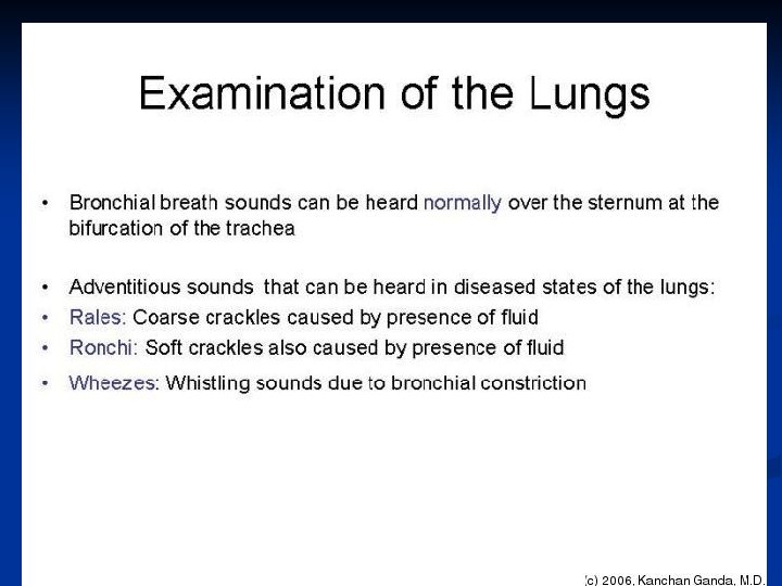Symtoms of bronchitis • • non-productive cough dyspnoe (due to obturation) fever vomiting wheezing dry rale coarse rattling