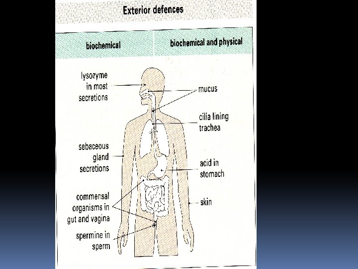 Pertahanan Larut Ø Biokimia - lizosim - sekresi sebaseus - asam lambung - laktoferin, dll Ø Humoral - komplemen - koagulasi - interferon - dll