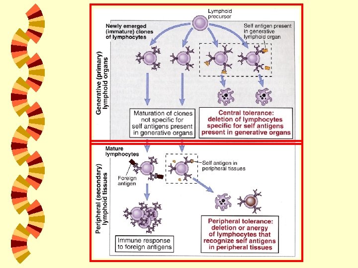 SENTRAL diinduksi oleh pengenalan self-Ag oleh limfosit immature di organ limfoid generative. Self tolerance PERIFER diinduksi oleh pengenalan self-Ag oleh limfosit mature di organ limfoid perifer