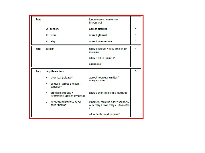 • Sensory receptor --> sensory neuron --> CNS --> relay neuron (spinal cord) --> motor neuron -> effector 4