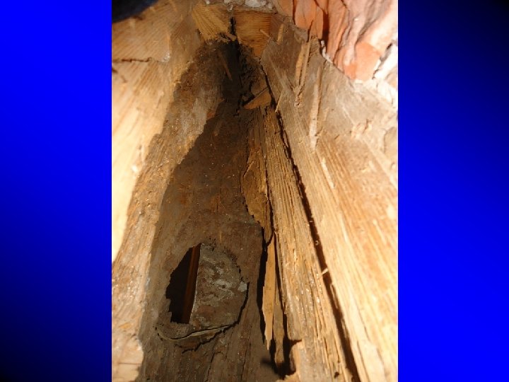 Funghi • Umidità del legno > 20% (strutture esterne o zone umide). Si fermano essiccando. • Attaccano sia l’alburno che il durame (salvo il durame di alcune specie) • L’attacco è normalmente localizzato ad una zona “umida” dell’elemento • Diminuzione di resistenza totale, ma solo nella zona attaccata • L’azzurramento (bluettatura) non provoca danni meccanici