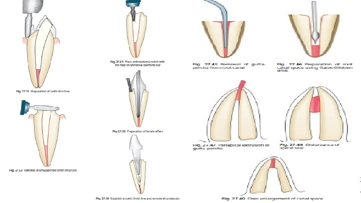 4 - Post taper Should confirm with the canal configuration to avoid : 1. Weakening of root structure. 2. Perforations 5 - Adequate relative parallelism in mid root to enhance retention. 6 - Transitional zone should be given a gradual taper B post and custom made core to resist the fracture.