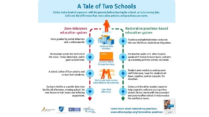 A Restorative Mindset Acts From Restorative Values Video: Kris Miner ● ● ● Relationship Responsibility Respect Repair Reintegration ● ● Empathy Bias Awareness Trauma-Informed Emotional Intelligence